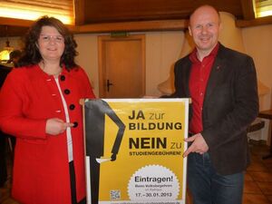 Noch bis nächsten Mittwoch läuft die Eintragungsfrist für das Volksbegehren „Grundrecht auf Bildung ernst nehmen – Studienbeiträge abschaffen“. In einer Veranstaltung im Töginger Gasthaus Springer informierten die Bundestagskandidatin der SPD Annette Heidrich und der SPD-Landtagskandidat Günter Zellner über kostenfreie Bildung und die Ziele des Volksbegehrens